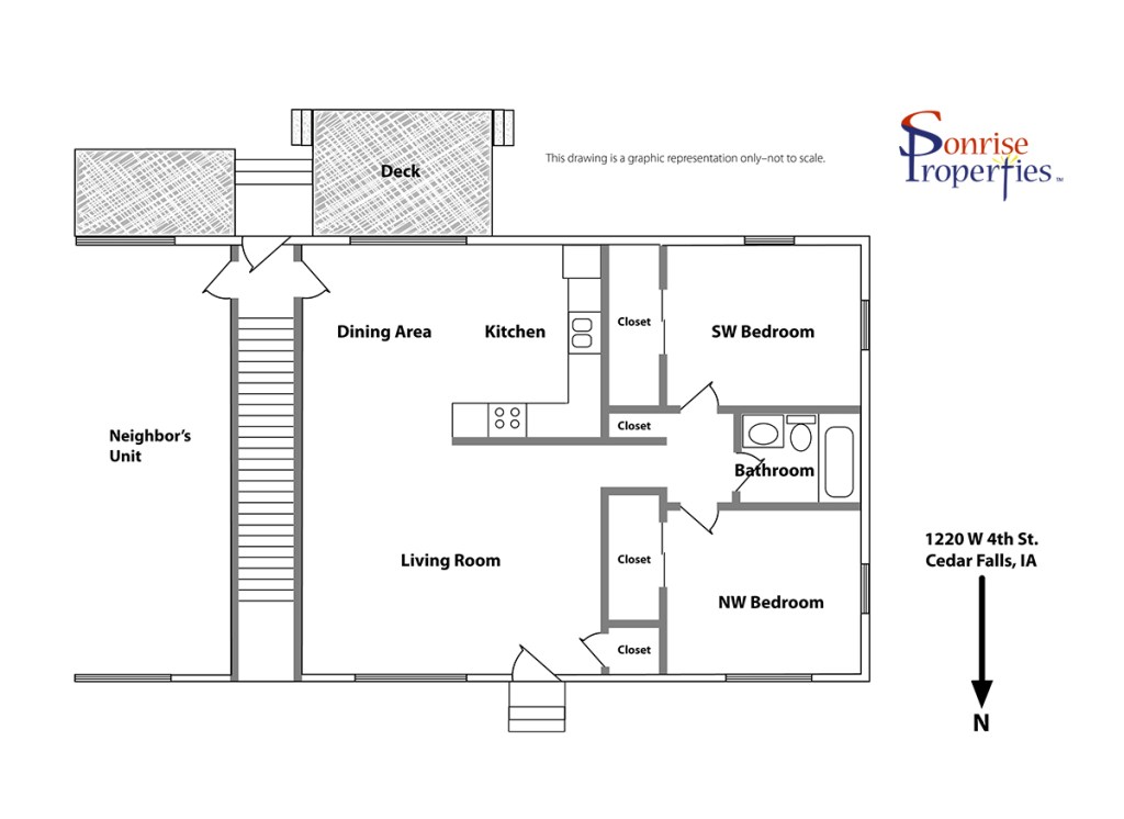 This newly renovated three bedroom duplex is situated in a great neighborhood west of MercyOne Cedar Falls Medical Center. A feature of this home is the open floor plan. A backyard deck offers occupants a place to enjoy warm weather and an outdoor extension off the kitchen/dining area.